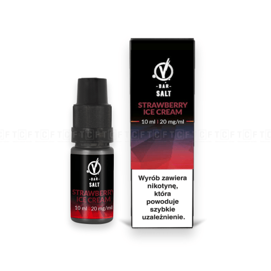 Liquid vBar Salt Strawberry Ice Cream dostępny jest w standardowej pojemności 10ml i zawiera moc liquidu wynoszącą 20mg/ml, co zapewnia długi okres użytkowania i satysfakcjonujący poziom nikotyny.