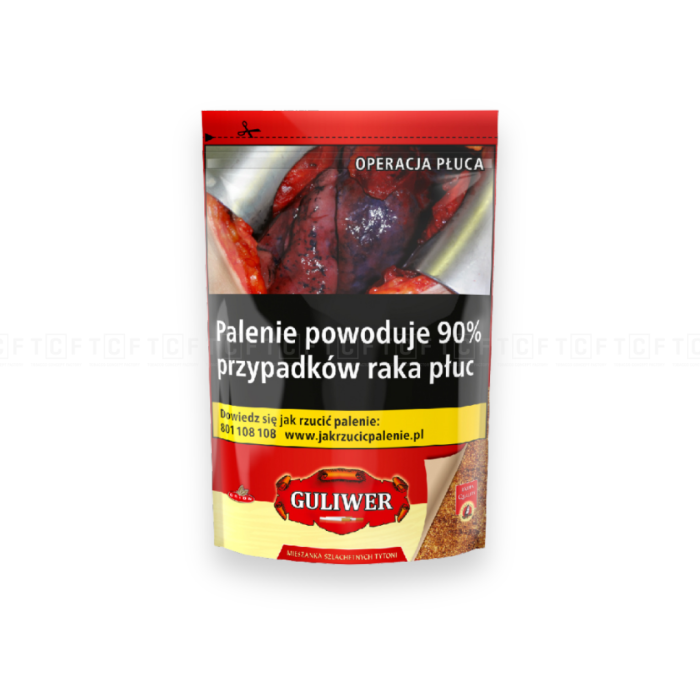 Tytoń Guliwer RED to wysokiej jakości mieszanka tytoniu, łącząca gatunki Virginia i Burley. Idealna do samodzielnego wytwarzania papierosów, w dużym ekonomicznym opakowaniu.