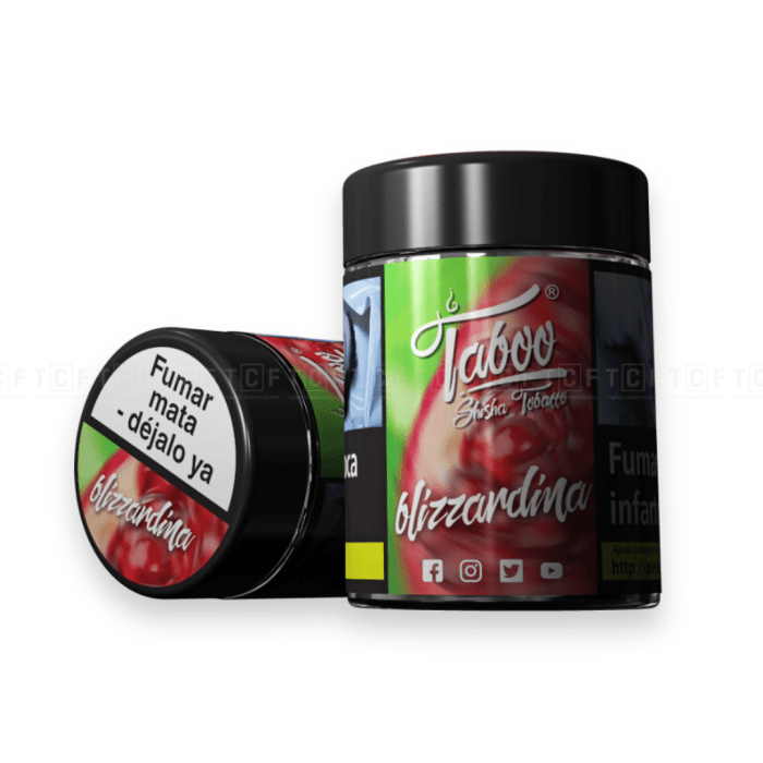 TABOO Blizzardina to odmiana tytoniu do fajki wodnej, łącząca w sobie smaki mięty z granatem. Produkt jest dostępny w opakowaniu o pojemności 50g. Charakteryzuje się świeżym aromatem mięty, który został uzupełniony słodko-kwaśnym posmakiem granatu. To doskonały wybór dla osób poszukujących orzeźwiających i równocześnie egzotycznych doznań podczas palenia fajki wodnej.