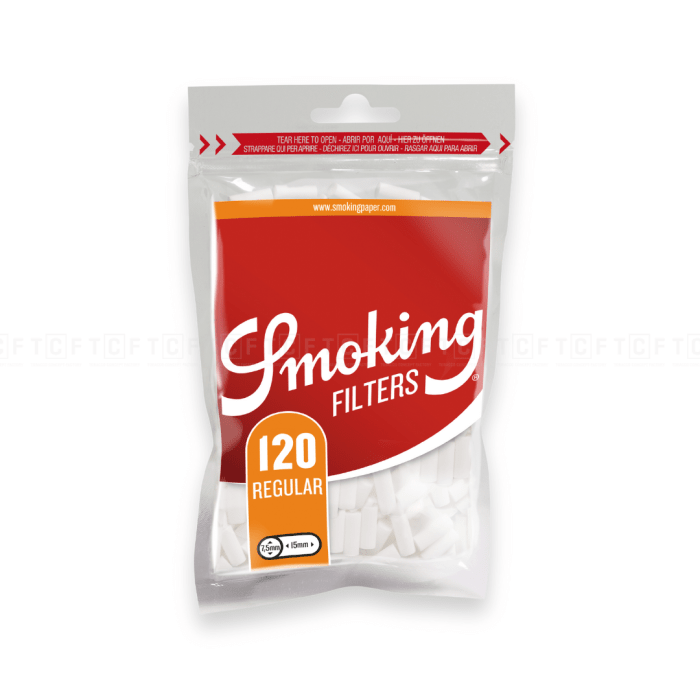 Klasyczna wersja filtrów, którym ufają wszyscy palacze. Opakowanie SmokingClassic Regular zawiera 120 filtrów o średnicy 7,5 mm i długości 15 mm, idealnych doskręcania papierosów.
