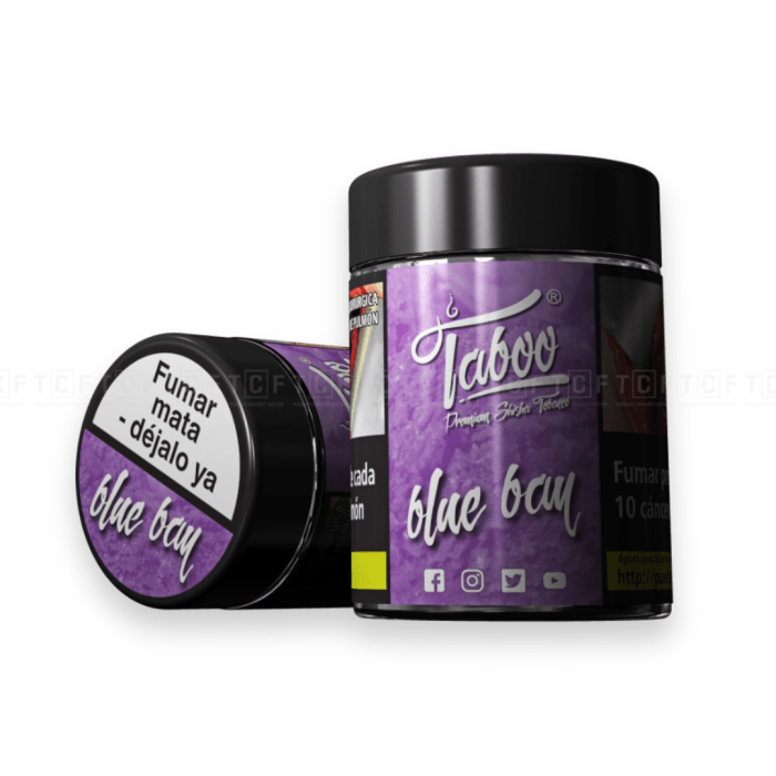 TABOO Blue Bay to odmiana tytoniu do fajki wodnej, łącząca w sobie smaki jagody z nutą świeżej mięty. Produkt jest dostępny w opakowaniu o pojemności 50g. Charakteryzuje się intensywnym, owocowym smakiem jagody, który został delikatnie podkreślony świeżością mięty. To doskonały wybór dla miłośników słodkich i orzeźwiających doznań podczas palenia fajki wodnej.